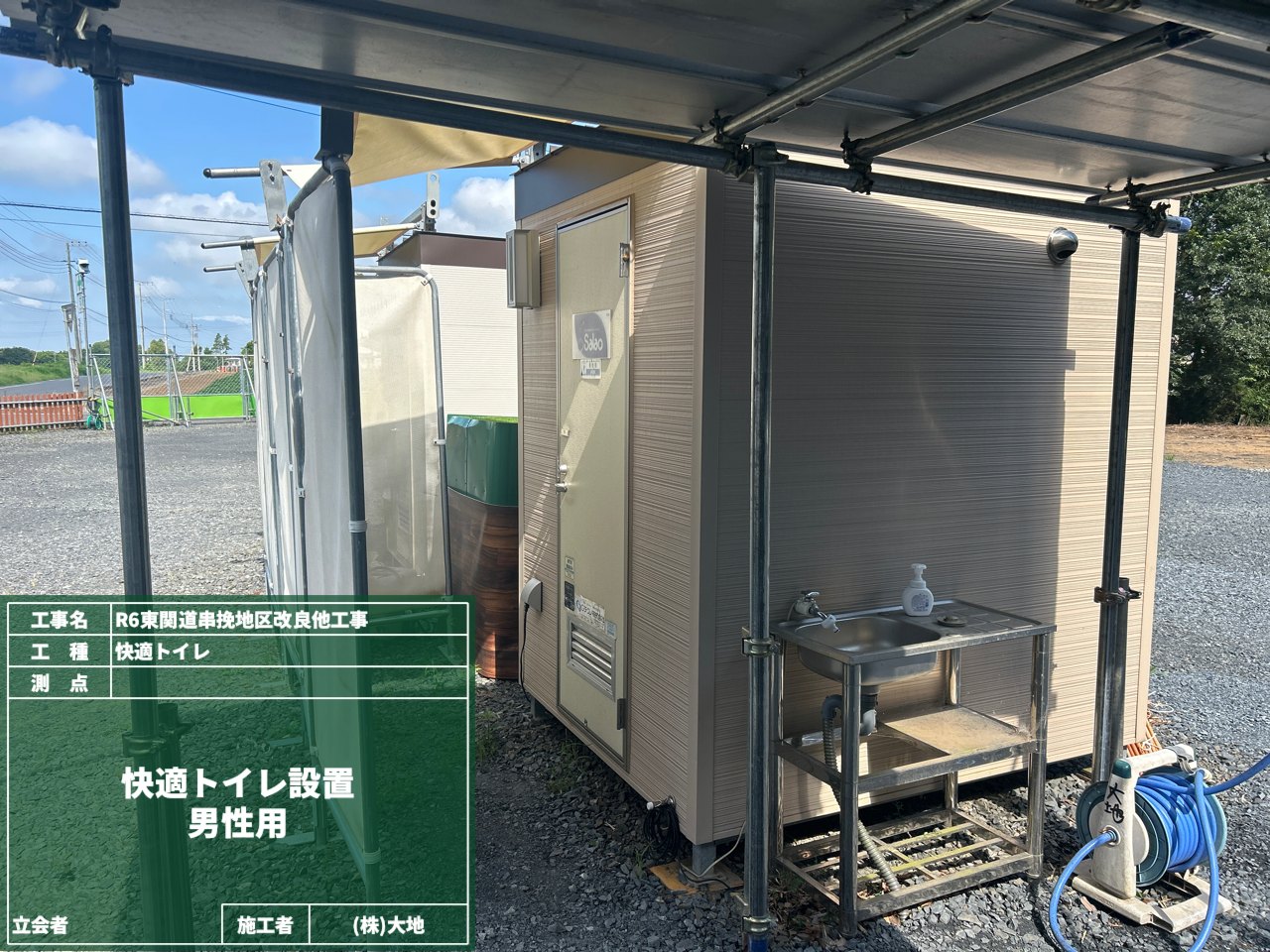 現場事務所に続き、今回は現場に設置している「快適トイレ」のご紹介です。