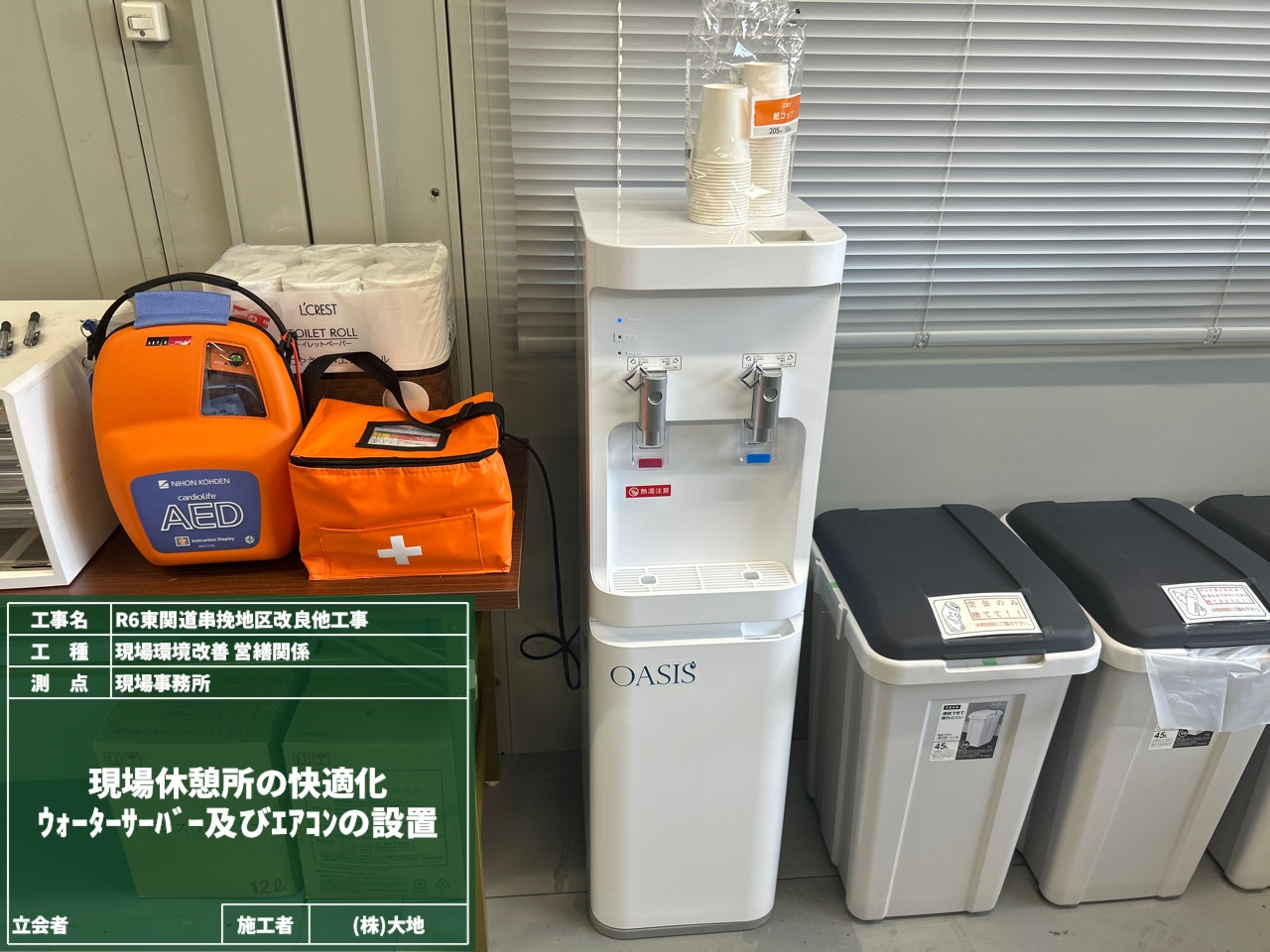 季節を問わず、空調と水分は必ず用意しています。作業員のオアシスはここにあり🌴🍹
