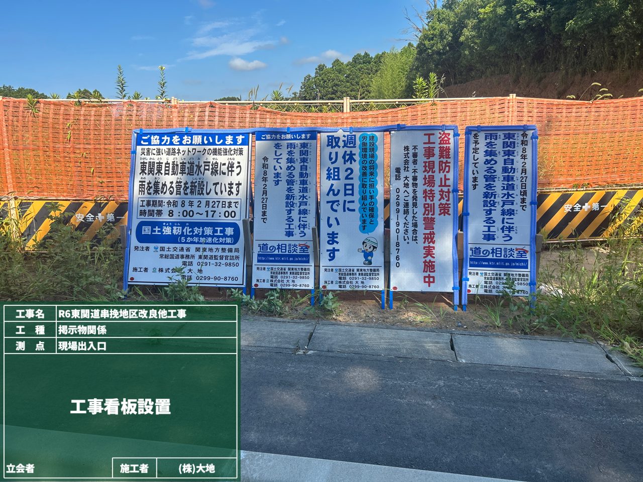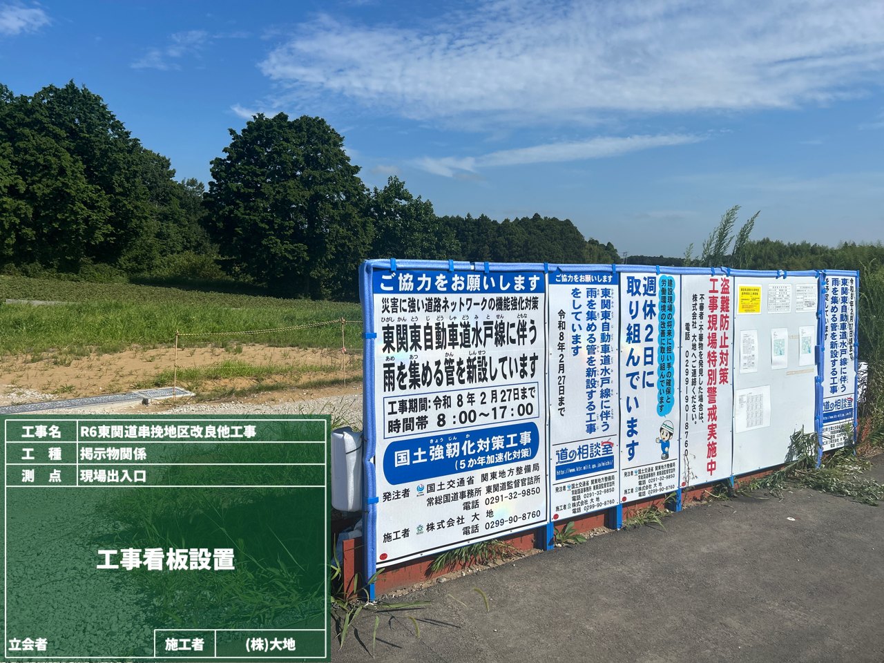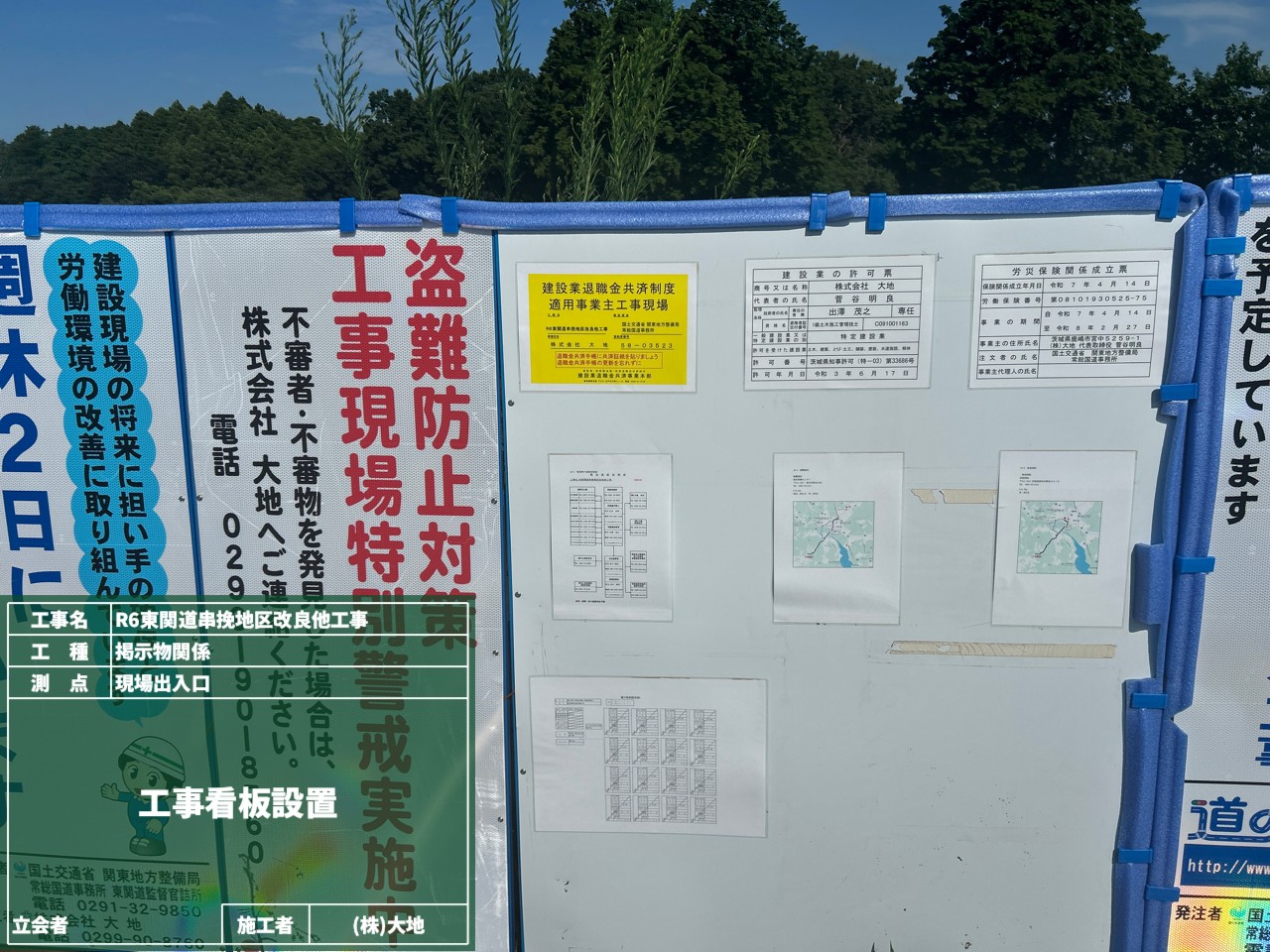今回の掲示板は、現場事務所の前に設置しました。