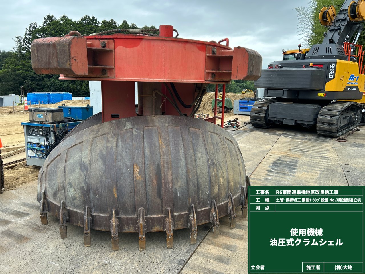 普段は土管の中に潜んでいるのに、どうして地上に!? ・・・なんておふざけはここまでで、正体は「クラムシェル」と呼ばれる掘削機械です。