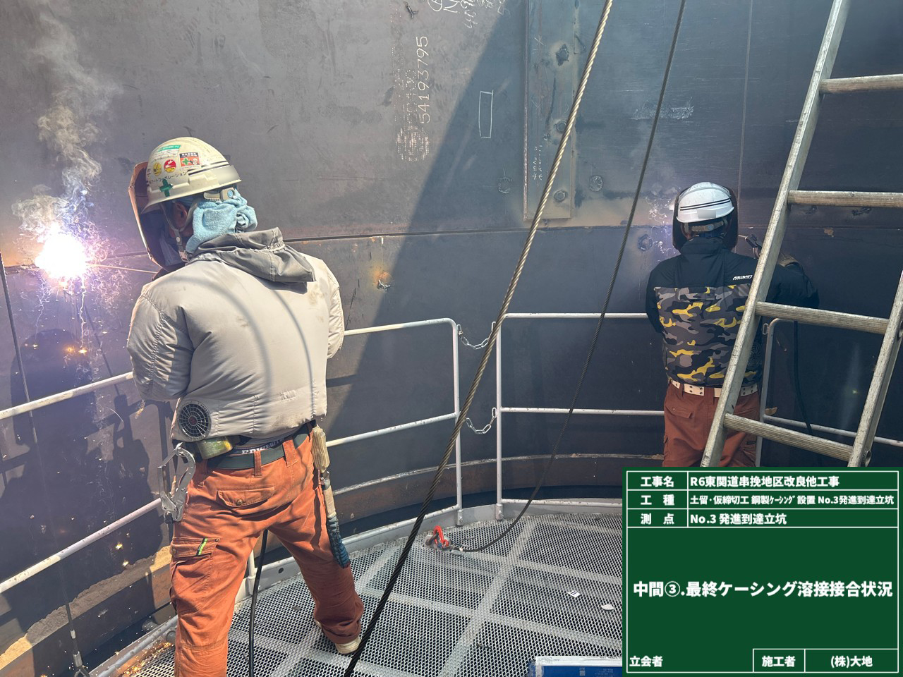 設置後、ケーシングの中では仮設以外のケーシングを溶接接合していきます。
