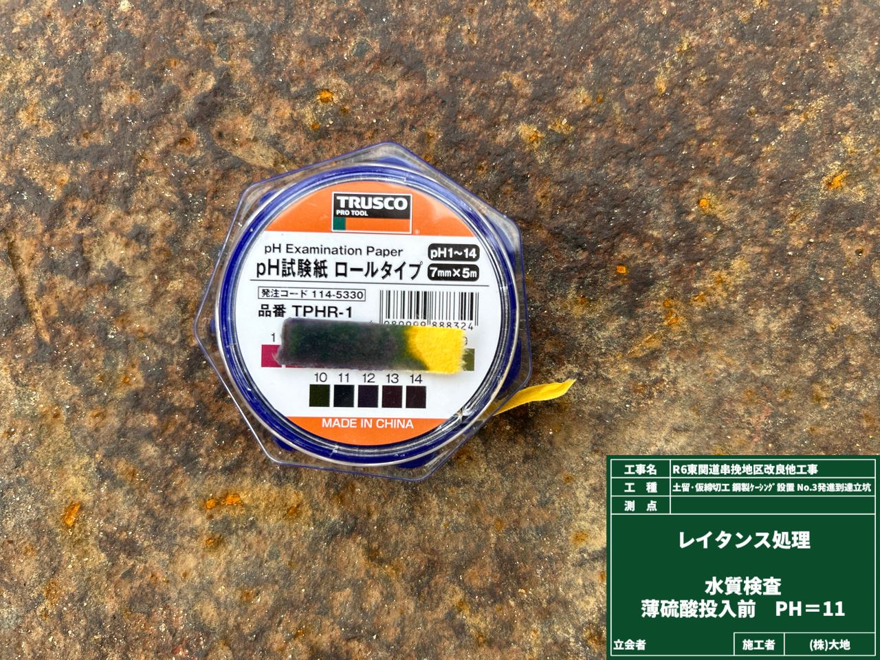 レイタンス処理前のpH値が11でした。(これは皮膚が化学やけどをしてしまう危険な値です☢)