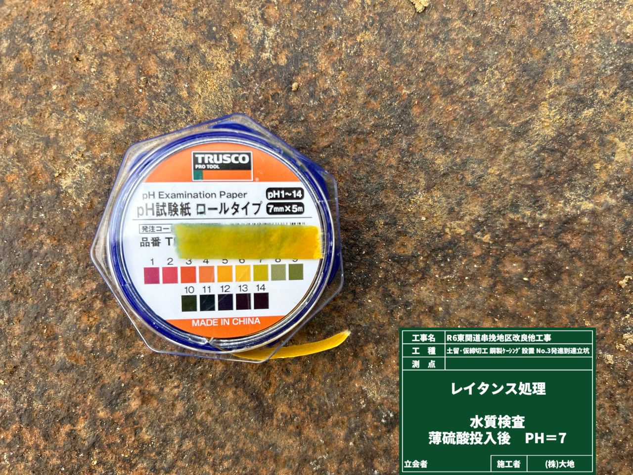 アルカリ性の強いレイタンス水に相棒を投入すると…化学反応でなんと中性のpH7に‼