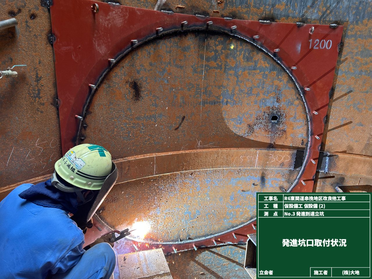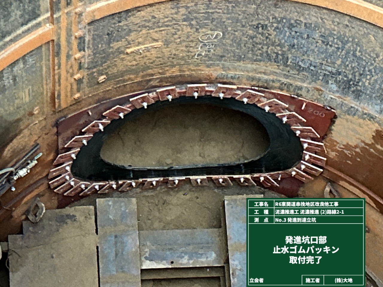 まずは、現場で掘進機が通る穴🕳️を開けて、止水ゴムパッキンを取り付けました。
