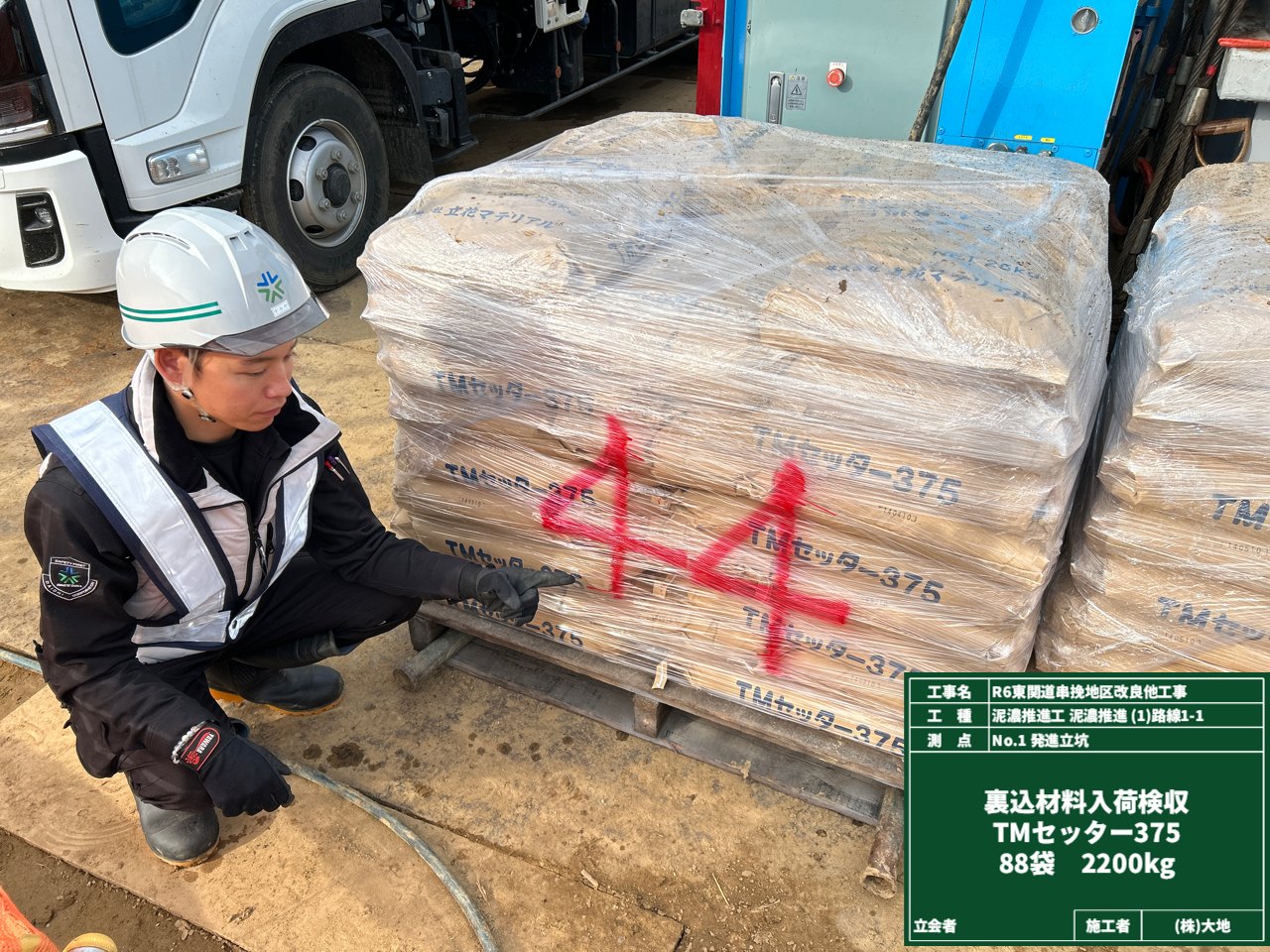 今回使用する「TMセッター375」は、推進工法用の裏込め注入材なんですよ✨